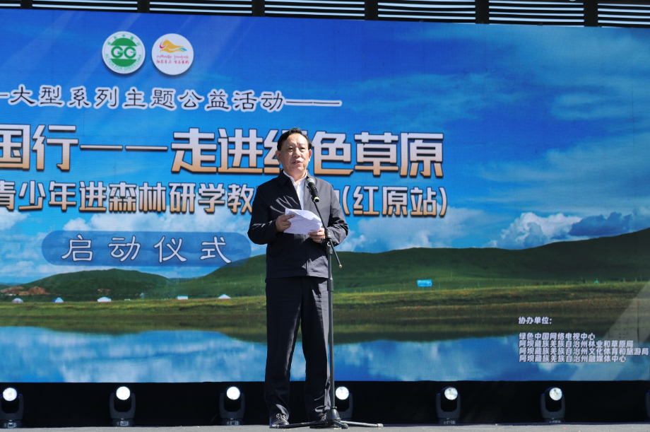 ??啟動(dòng)儀式上,國(guó)家林業(yè)和草原局原副局長(zhǎng)、全國(guó)關(guān)注森林活動(dòng)執(zhí)行委員會(huì)副主任劉東生,四川省林業(yè)和草原局黨組成員、副局長(zhǎng)王景弘,中共阿壩藏族羌族自治州委副書(shū)記、州政府黨組書(shū)記、州長(zhǎng)羅振華,中共紅原縣委書(shū)記楊文松等出席啟動(dòng)儀式并致辭。綠色中國(guó)形象大使劉勁攜青少年代表共同宣讀《全國(guó)三億青少年走進(jìn)紅色草原倡議書(shū)》。