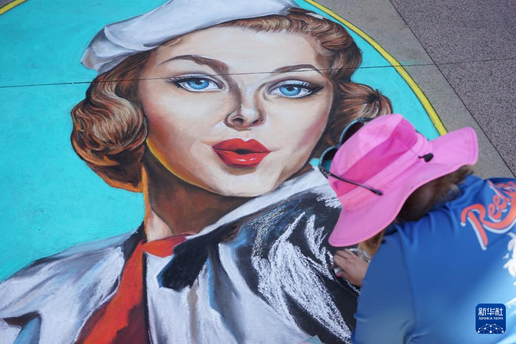 6月23日,藝術(shù)工作者在美國加利福尼亞州帕薩迪納市舉行的粉筆畫節(jié)上創(chuàng)作。