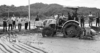 6月5日,萬(wàn)年縣青云鎮(zhèn)史橋村田畈上一臺(tái)新型農(nóng)機(jī)“種肥同播機(jī)”正在示范作業(yè)。近年來(lái),萬(wàn)年縣農(nóng)機(jī)部門不斷引進(jìn)推廣新型農(nóng)業(yè)機(jī)械裝備,做好技術(shù)服務(wù),極大地提高了農(nóng)業(yè)機(jī)械化水平和農(nóng)業(yè)生產(chǎn)效率,促進(jìn)了農(nóng)業(yè)高效發(fā)展。趙德穩(wěn) 攝