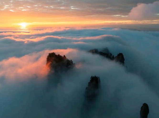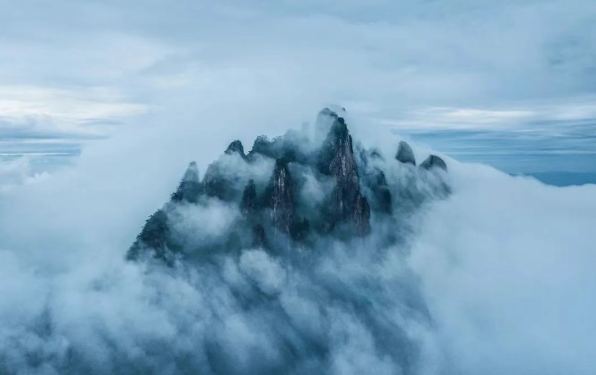 它們從山谷涌出,裹著松針的清香,漫過花崗巖的棱角,把千仞絕壁變成一座座孤島。山成了云中的鯨,在乳白的海浪里游弋,脊背時隱時現(xiàn),驚起一片驚嘆的漣漪。