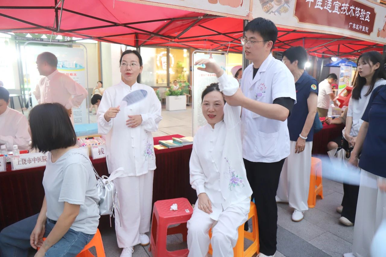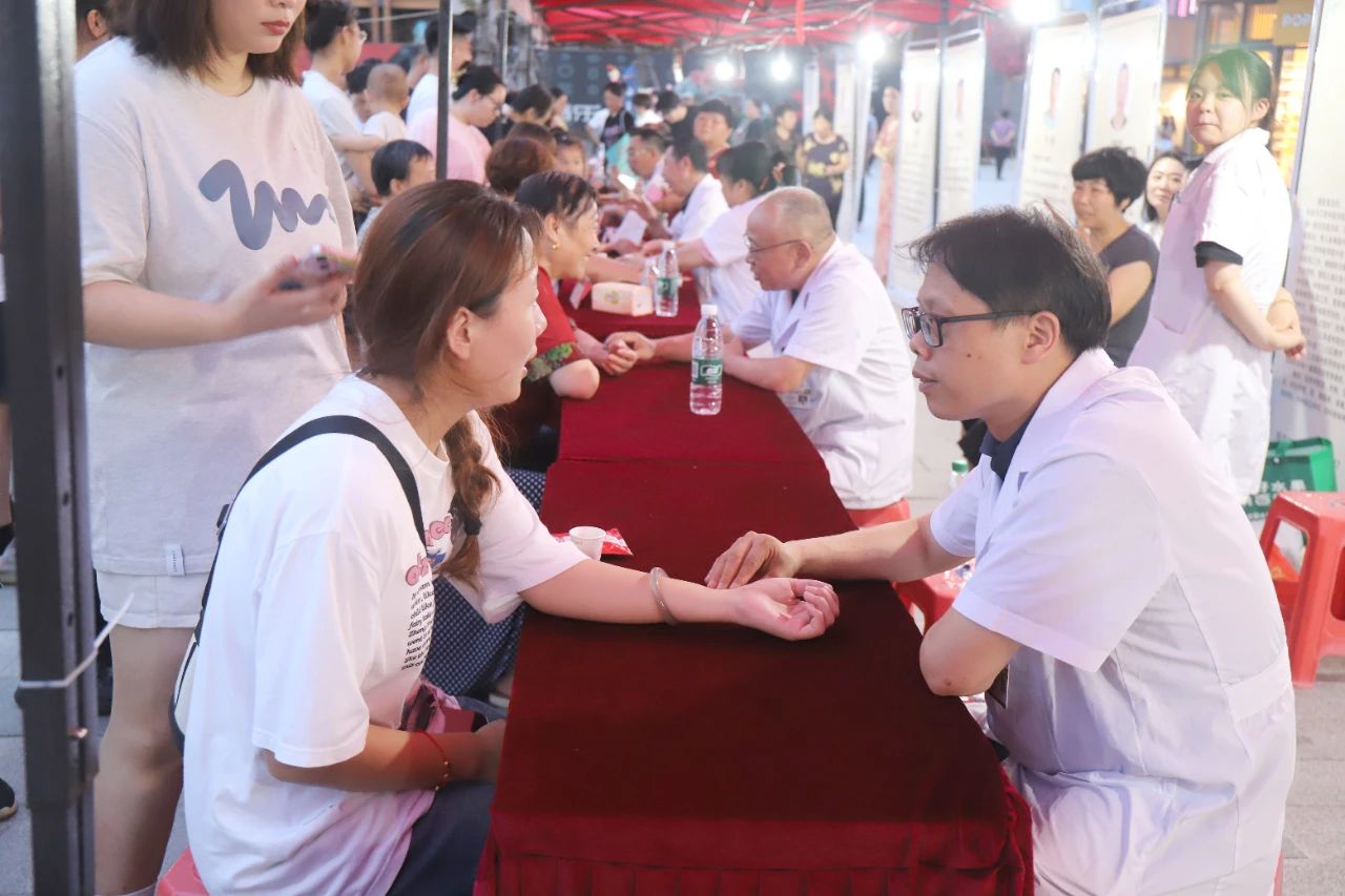 晚上7點(diǎn),華燈初上,水南街夜市人潮漸涌??諝庵袕浡纳駵乃幭?。來自上饒市人民醫(yī)院、市中醫(yī)院等多家醫(yī)療機(jī)構(gòu)的資深中醫(yī)專家們,為絡(luò)繹不絕的市民免費(fèi)開展疾病診斷、健康咨詢與體質(zhì)辨識(shí),并根據(jù)每個(gè)人的具體情況,量身定制個(gè)性化的中醫(yī)養(yǎng)生保健建議。把脈臺(tái)前,隊(duì)伍有序延伸?!鞍滋旃ぷ髅]空去醫(yī)院,晚上遛彎的功夫就能看中醫(yī),太方便了!”剛體驗(yàn)完把脈問診的李女士,手里拿著新鮮出爐的養(yǎng)生方案。“醫(yī)生,我這失眠能扎耳穴嗎?”上班族小陳正嘗試人生第一次耳穴壓豆。推拿區(qū)里,剛體驗(yàn)完刮痧的王阿姨指著后背的紅印感慨:“出痧了!感覺肩膀松快多了?!?/p>