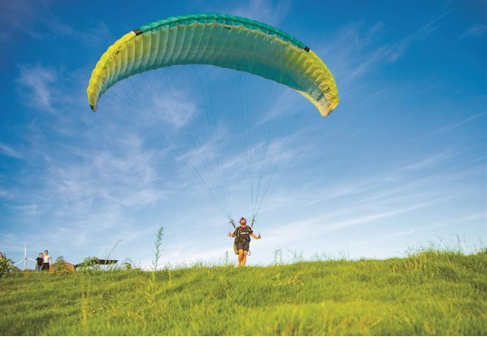 8月8日,位于橫峰縣葛源鎮(zhèn)的米頭尖滑翔傘基地,吸引了眾多游客前來打卡體驗。游客們可在此與白云相擁、與山野對話,從空中俯瞰峰林景觀,感受低空飛行的獨特魅力。