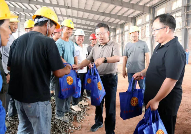 鄭國(guó)良、余洪雷一行分別到玉恒廣場(chǎng)外賣驛站、城市環(huán)境衛(wèi)生服務(wù)中心、宏茂紡織、德隆四期建設(shè)現(xiàn)場(chǎng)等地,了解他們的工作情況、生活狀態(tài),代表縣委、縣政府向奮戰(zhàn)在一線的新就業(yè)形態(tài)勞動(dòng)者、環(huán)衛(wèi)工人、建筑工人、交通城管等值班值守人員表示親切慰問(wèn),對(duì)他們?cè)诟邷丨h(huán)境下仍堅(jiān)守崗位、辛勤付出表示感謝。