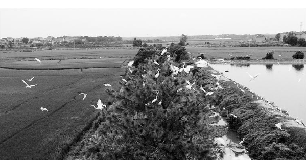 近日,在萬(wàn)年縣湖云鄉(xiāng)歐村村,萬(wàn)只白鷺聚集的景象非常壯觀。