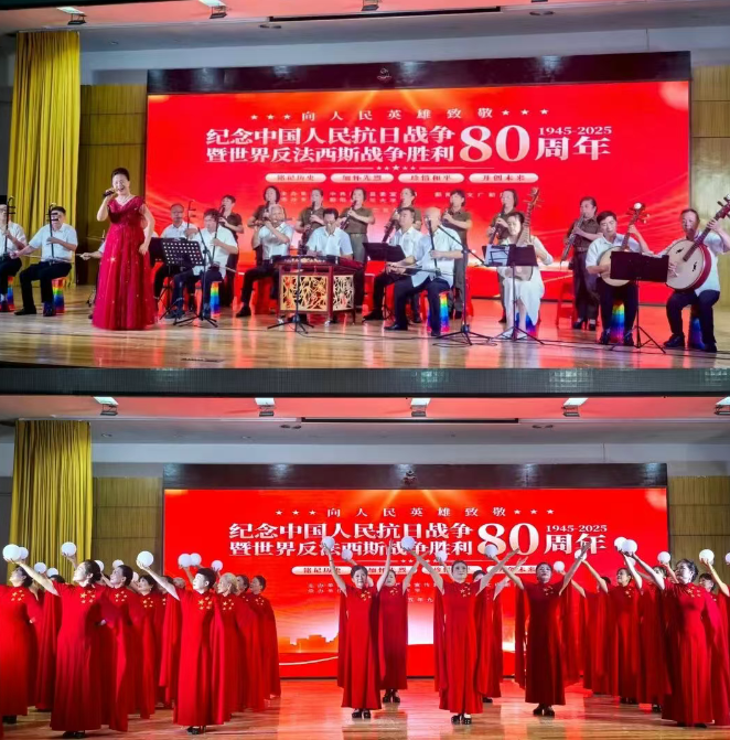 9月14日,縣委會議中心內(nèi)燈光璀璨,座無虛席。鄱陽縣各界人士與群眾代表齊聚一堂,共同觀看由縣老年大學學員呈現(xiàn)的“紀念中國人民抗日戰(zhàn)爭暨世界反法西斯戰(zhàn)爭勝利80周年”文藝匯演。活動旨在通過文藝形式傳承抗戰(zhàn)精神,弘揚愛國主義情懷。