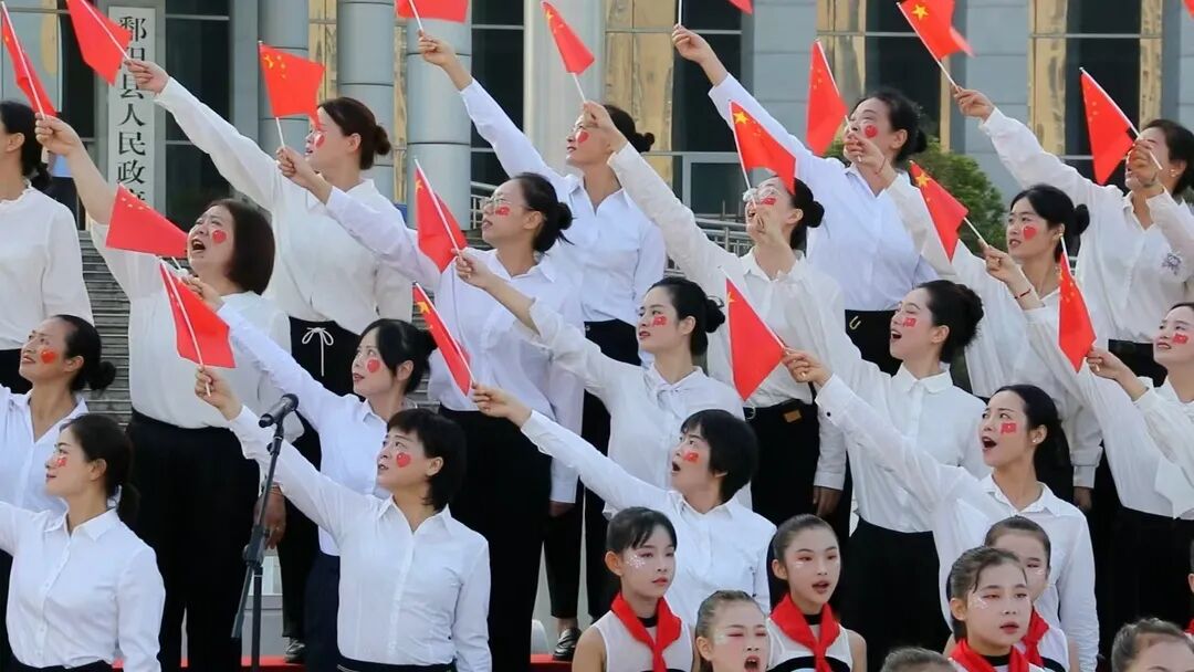 政府廣場(chǎng)紅旗招展,歌聲飄揚(yáng),節(jié)日氣氛熱烈濃厚?;顒?dòng)現(xiàn)場(chǎng),參與者們身著整齊服裝,精神飽滿地站列成隊(duì)。伴隨著悠揚(yáng)的伴奏旋律,大家齊聲高唱《今天是你的生日》,歌聲鏗鏘有力、飽含深情,既唱出了對(duì)祖國(guó)母親的真摯祝福,也展現(xiàn)了鄱陽(yáng)縣女性積極向上、團(tuán)結(jié)奮進(jìn)和少年兒童朝氣蓬勃、向陽(yáng)生長(zhǎng)的精神風(fēng)貌。合唱過(guò)后,大家齊聲祝福偉大的祖國(guó)生日快樂(lè),繁榮富強(qiáng)!