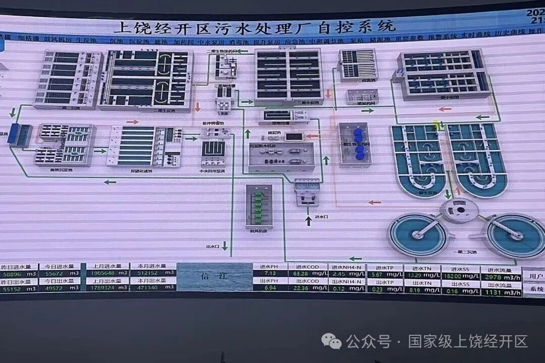 走進上饒經(jīng)開區(qū)污水處理廠的中控室,屏幕上跳動的進水流量、水質(zhì)指標(biāo)等數(shù)據(jù)不停更新,運行人員緊盯參數(shù)變化,時刻關(guān)注設(shè)備運行情況……這種人機協(xié)同的智慧場景,已成為這座現(xiàn)代化污水處理廠的日常。