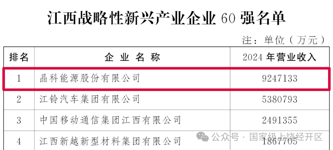 我區(qū)企業(yè)表現(xiàn)亮眼——晶科能源股份有限公司、上饒捷泰新能源科技有限公司同時入圍2025江西企業(yè)100強、2025江西制造業(yè)企業(yè)100強以及2025江西戰(zhàn)略性新興產(chǎn)業(yè)企業(yè)60強。