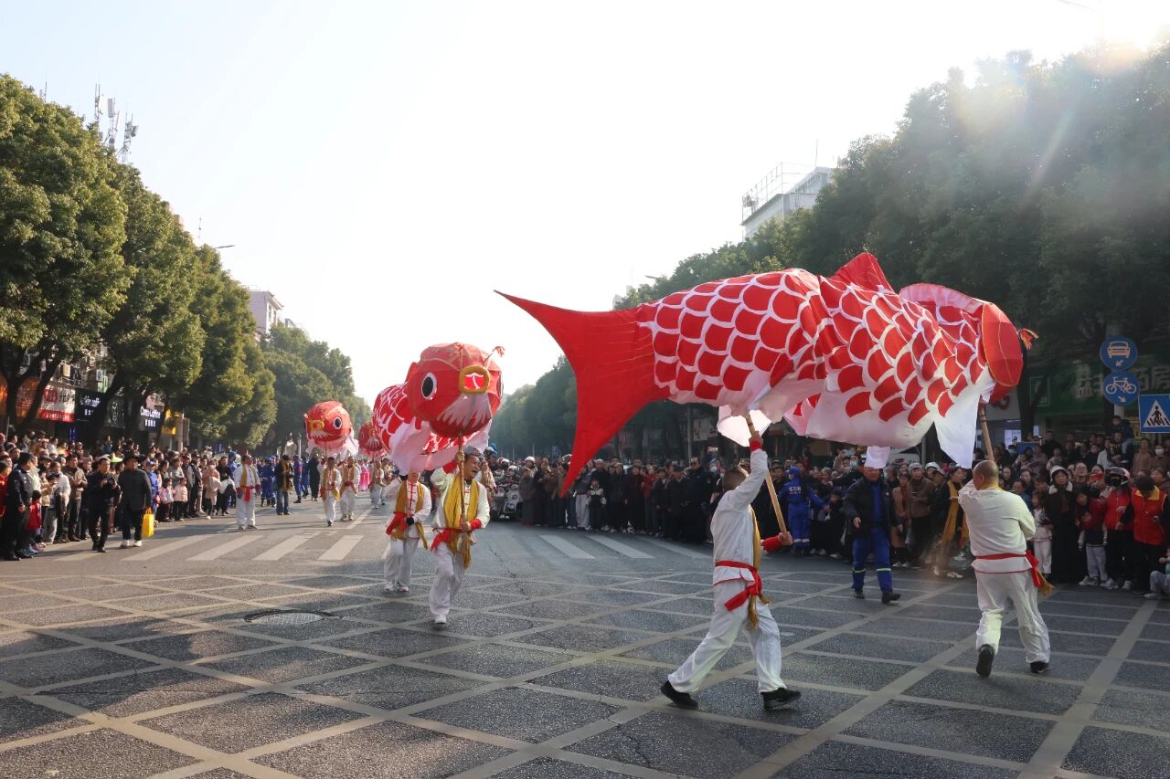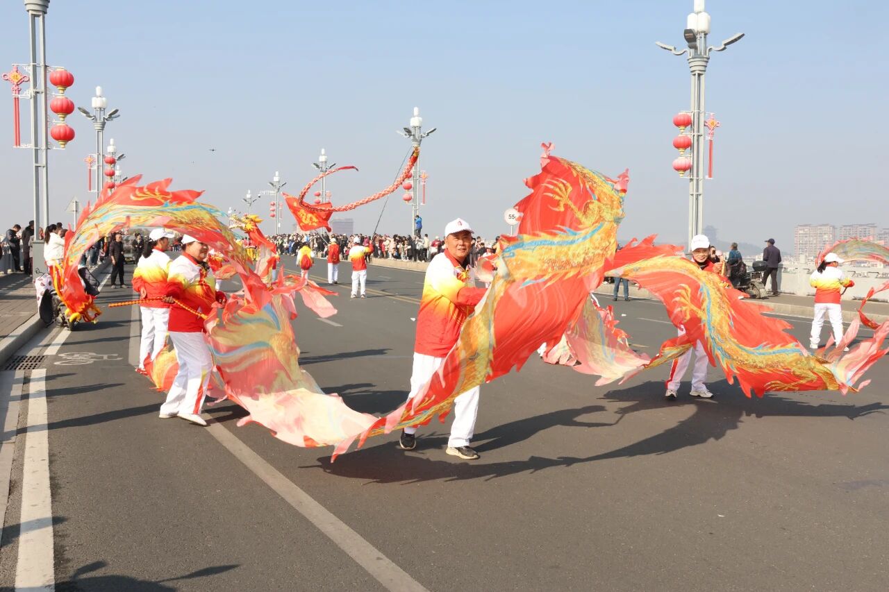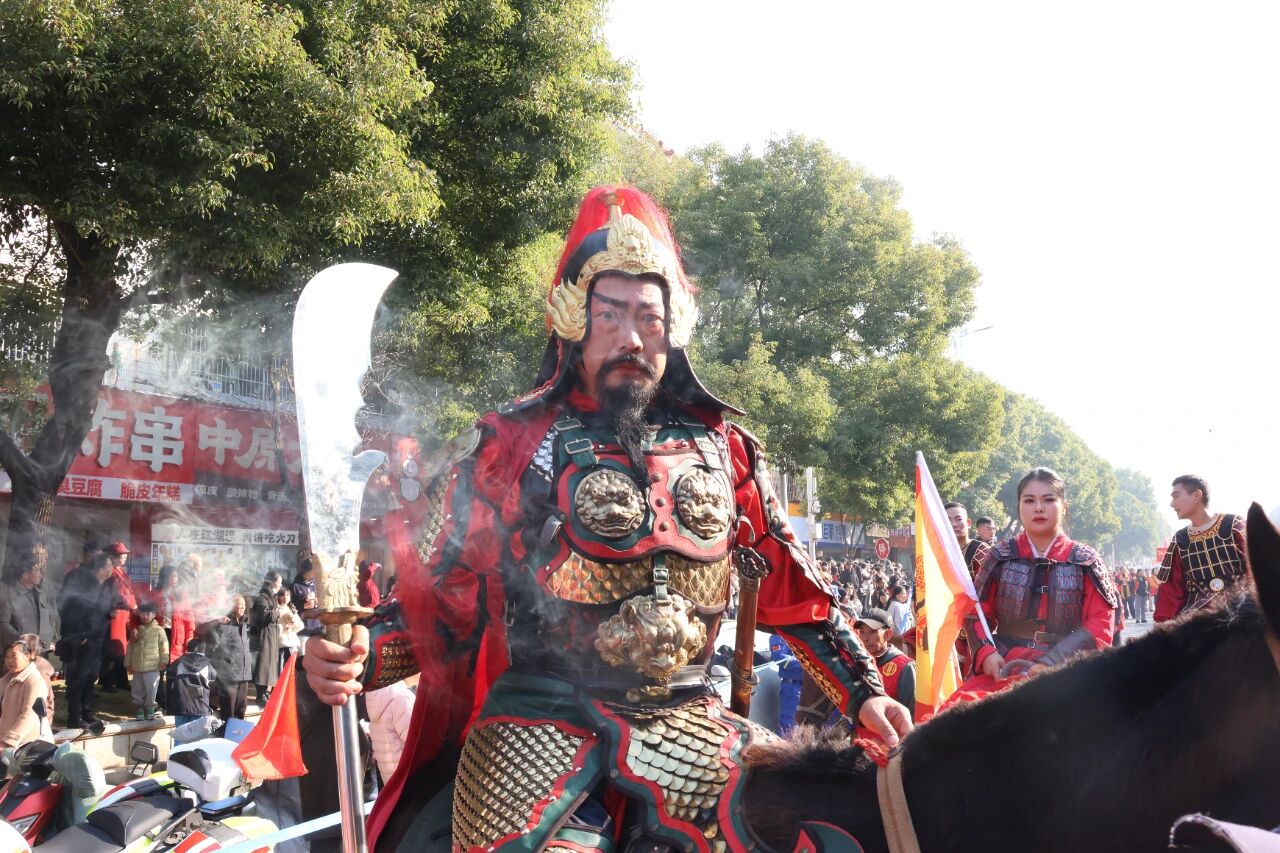 數(shù)萬(wàn)余名本地觀眾及從豫皖粵廈等地奔赴而來(lái)的嘉賓、游客,將千年古鎮(zhèn)圍得水泄不通——街巷兩側(cè)擠滿翹首以盼的人群,孩童騎在父親肩頭揮舞彩旗,白發(fā)老者拄杖立于青石階前,目光如炬望向主舞臺(tái)。