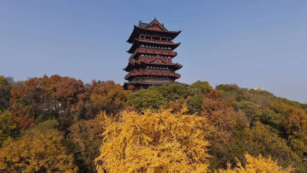 作為國家一級古樹名木,這株古銀杏既承載著當(dāng)?shù)氐臍v史記憶,更綻放著旺盛生機。初冬時節(jié),它的葉片次第金黃,綠黃漸變的色彩層次分明。暖陽穿透枝葉灑下碎金光影,地面落英鋪就“金色地毯”。尤以鄱陽樓周邊景致最為別致,樓宇巍峨矗立,銀杏環(huán)繞簇?fù)?,金葉映樓、樓襯金景,如詩如畫宛若童話秘境。