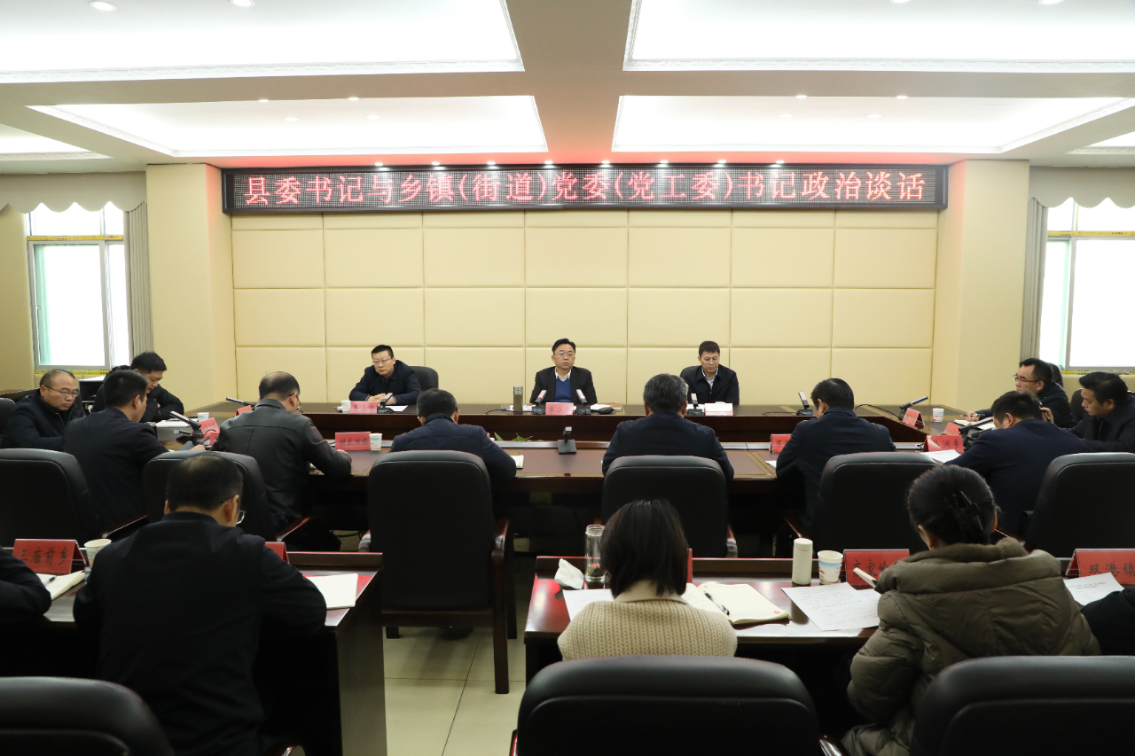 12月25日,市政府副市長(zhǎng)、縣委書(shū)記李小平與各鄉(xiāng)鎮(zhèn)(街道)黨委(黨工委)書(shū)記開(kāi)展政治談話??h領(lǐng)導(dǎo)侯利森、夏立榮出席會(huì)議。