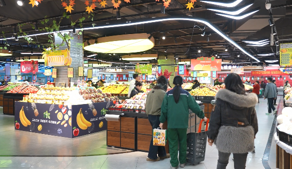 在玉山天街的福喜合超市,入口處的新年裝飾和“元旦特惠”的海報(bào)相映成趣。超市內(nèi),購(gòu)物車、購(gòu)物籃被市民陸續(xù)取用,收銀臺(tái)前排起了整齊的隊(duì)伍,掃碼聲、計(jì)價(jià)聲與市民的歡聲笑語(yǔ)交織在一起,熱鬧非凡。生鮮區(qū)是最受歡迎的區(qū)域之一,新鮮的水果飽滿多汁,翠綠的蔬菜帶著晨露的新鮮;食品區(qū)貨架上堅(jiān)果禮盒、糖果餅干、進(jìn)口零食等一應(yīng)俱全;糧油米面、洗漱用品等生活必需品也是應(yīng)有盡有。據(jù)超市負(fù)責(zé)人介紹,為了應(yīng)對(duì)元旦消費(fèi)高峰,他們提前半個(gè)月就開(kāi)始備貨,生鮮類商品日補(bǔ)貨量比平時(shí)增加了30%,種類也比平時(shí)多了20余種,完全能滿足市民的采購(gòu)需求。