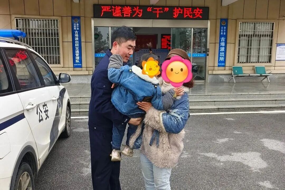2月1日上午,古埠派出所接到群眾報警,稱在古埠村附近有一名幼童獨自哭泣,疑似走失。民警立即趕赴現(xiàn)場,一邊溫柔安撫孩子情緒,一邊同步在周邊展開走訪排查。通過細致工作,民警在半小時內便成功找到了孩子母親。見到孩子平安無恙,母親激動不已,緊緊握住民警的手連連致謝。