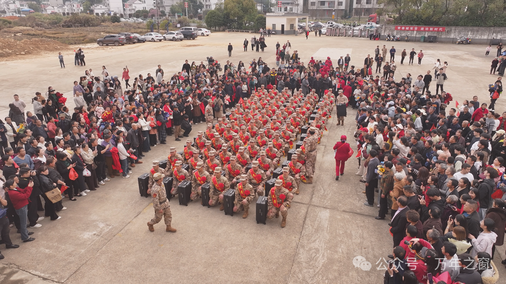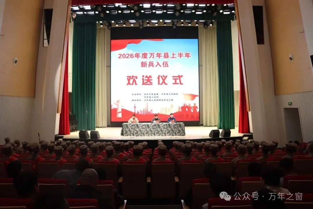 3月15日,萬年縣2026年上半年新兵入伍歡送儀式在萬年縣新時代文明實踐中心舉行。縣委常委、政法委書記李錦春,縣委常委、縣人武部部長周軍出席儀式。