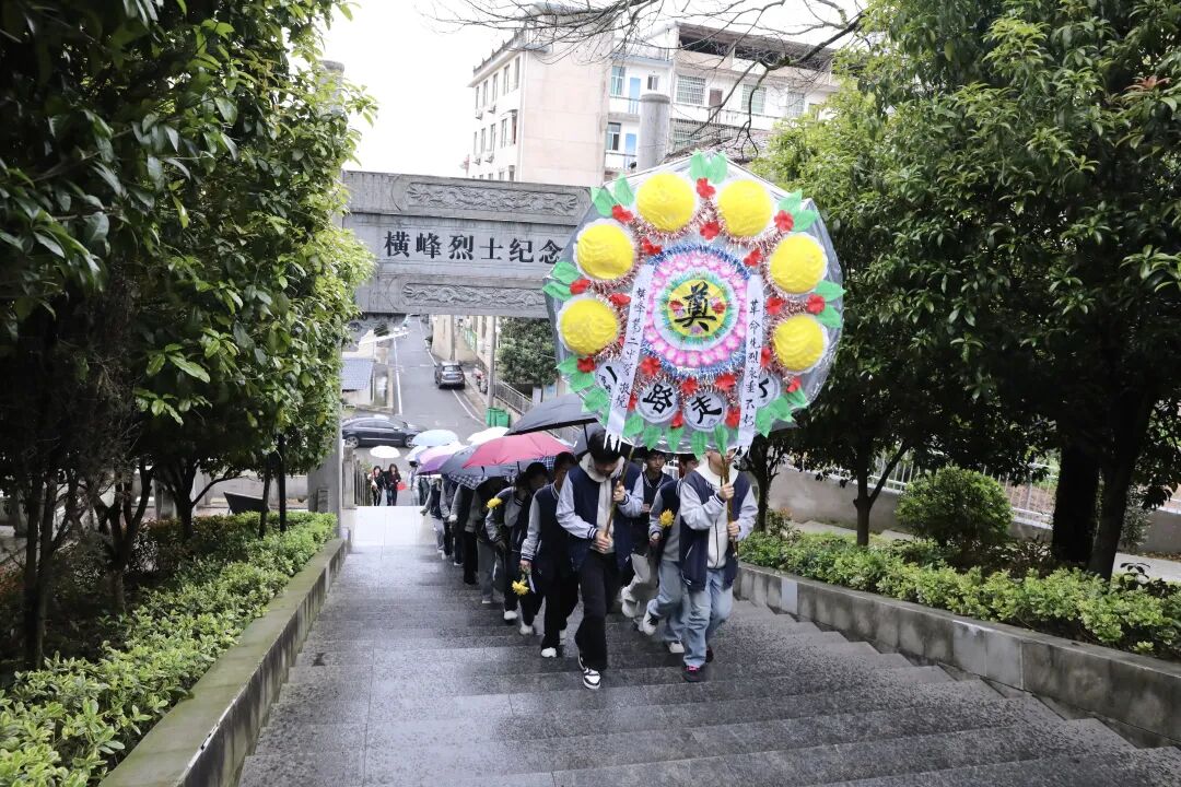 3月31日,綿綿春雨中,橫峰縣第二中學(xué)組織學(xué)生前往紀(jì)念塔開展清明祭掃活動(dòng)。同學(xué)們身著校服、神情肅穆,在烈士紀(jì)念塔前整齊列隊(duì),集體默哀致敬,深切緬懷革命先烈;隨后齊聲誦讀祭文,以鏗鏘話語(yǔ)傳承英烈精神;最后依次獻(xiàn)上鮮花,用低碳環(huán)保的方式寄托哀思。