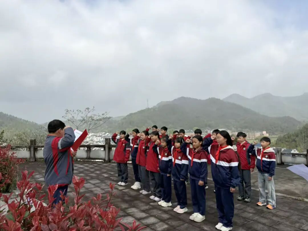 全體少先隊(duì)員面向隊(duì)旗莊嚴(yán)宣誓,誓言鏗鏘有力。輔導(dǎo)員向同學(xué)們講述了英烈故事,帶領(lǐng)學(xué)生重溫烽火歲月。