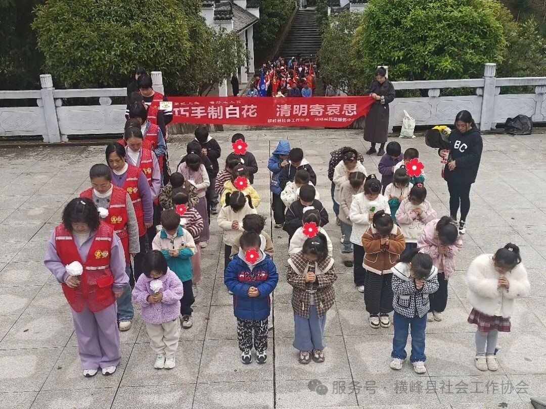 社工們與社區(qū)居民、青少年一同動手精心制作潔白紙花,每一朵白花都承載著對革命先烈的深切緬懷與崇高敬意。隨后,全體人員整齊列隊(duì)前往橫峰烈士紀(jì)念塔。在巍峨莊嚴(yán)的烈士紀(jì)念塔前,奏響國歌,全體人員肅立行注目禮,歌聲鏗鏘,敬意滿懷。國歌畢,集體默哀致敬,深切追思為國家獨(dú)立、民族解放和人民幸福英勇獻(xiàn)身的革命先烈,表達(dá)無盡的追思與悼念。