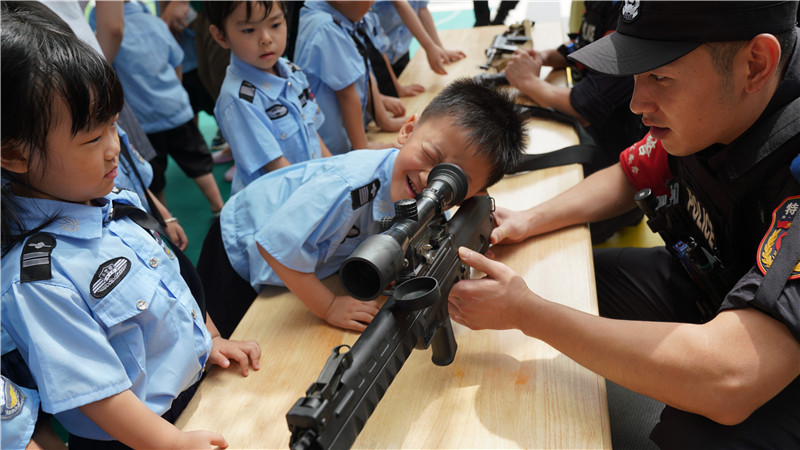 為進(jìn)一步筑牢校園安全防線,提高學(xué)校應(yīng)急、處突能力,近日,上饒市特警支隊(duì)走進(jìn)信州區(qū)三清寶寶樹幼兒園開展了“筑牢安全防線、共建平安校園”活動(dòng)。據(jù)悉,該活動(dòng)旨在通過(guò)實(shí)戰(zhàn)演練、警用裝備展示和形式豐富的互動(dòng)活動(dòng)向孩子們介紹安全知識(shí),讓他們?cè)诹私馓鼐氊?zé)使命的同時(shí),進(jìn)一步提升安全意識(shí)和安全防范能力。