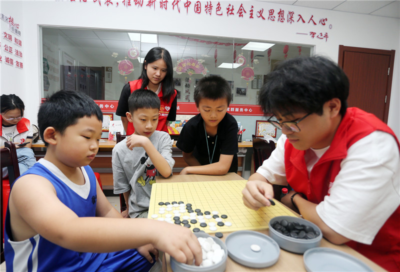 暑假期間,信州區(qū)北門街道長塘社區(qū)結(jié)合實際,充分利用大學(xué)生參與社會實踐的資源,在社區(qū)開展形式多樣的免費暑托班,緩解家長假期“帶娃難”困擾,讓孩子們度過一個安全、充實、快樂的假期。記者 戴越 攝