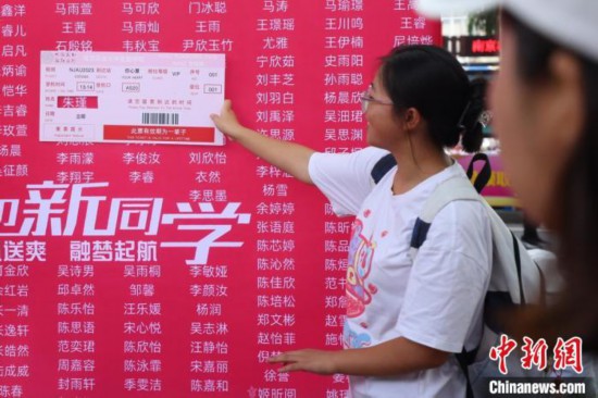 新生手持夢(mèng)想“機(jī)票”打卡新生名單墻?!°蟛?攝