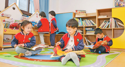 江西省萍鄉(xiāng)市實驗幼兒園的小朋友在閱讀繪本。
