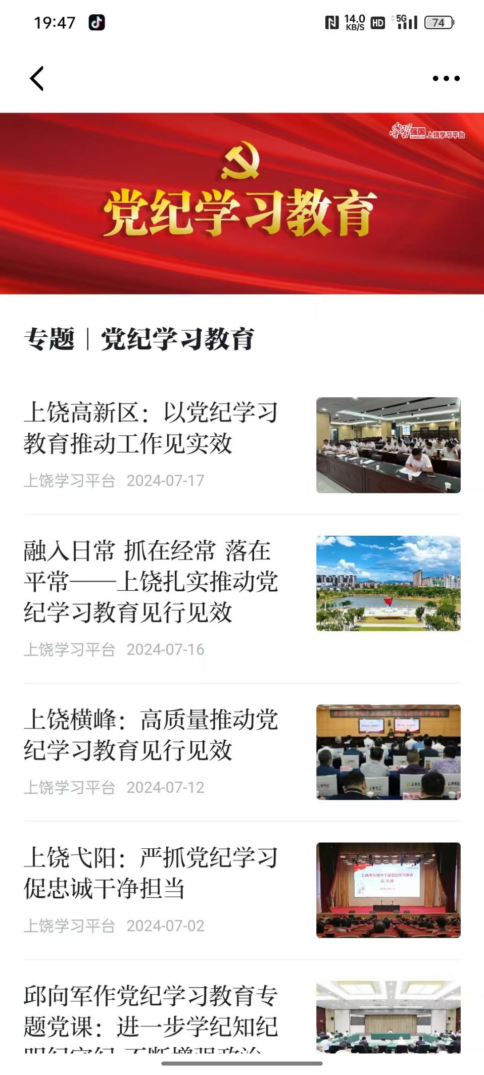 在學(xué)習(xí)強(qiáng)國上饒學(xué)習(xí)平臺(tái)開設(shè)黨紀(jì)學(xué)習(xí)教育欄目,發(fā)稿25篇,重點(diǎn)稿件題目:融入日常 抓在經(jīng)常 落在平常一一上饒?jiān)鷮?shí)推動(dòng)黨紀(jì)學(xué)習(xí)教育見行見效