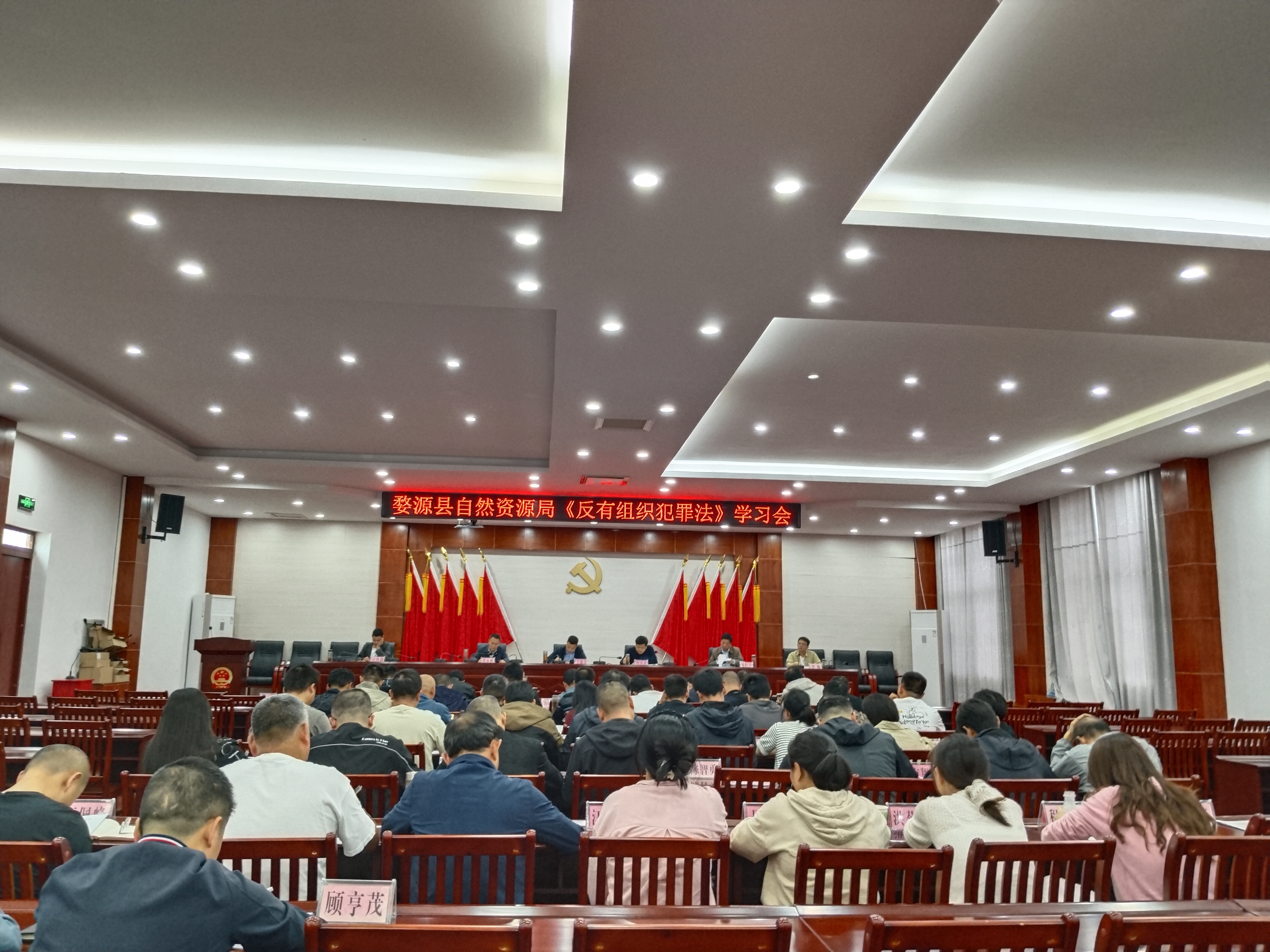 為進(jìn)一步推動(dòng)掃黑除惡常態(tài)化工作向縱深發(fā)展,切實(shí)維護(hù)社會(huì)安全穩(wěn)定,提高自然資源干部運(yùn)用法律手段同黑惡勢(shì)力斗爭(zhēng)的能力和水平,增強(qiáng)與反組織犯罪作斗爭(zhēng)的意識(shí),近日,婺源縣自然資源局開展《中華人民共和國(guó)反有組織犯罪法》專題學(xué)習(xí)會(huì),組織全體干部集中學(xué)習(xí)。