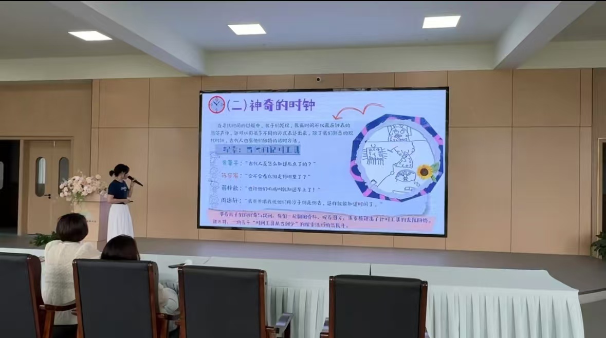 分享環(huán)節(jié)中,各班老師們結(jié)合PPT展示、視頻播放等形式,從課程來源、目標(biāo)設(shè)定、實(shí)施過程、成果展示和反思總結(jié)等多個(gè)維度,詳細(xì)闡述《好事“花生”》《與時(shí)間的對話》《喝水這件事》等課程故事。教師們的分享各具特色、亮點(diǎn)紛呈,充分展現(xiàn)了他們對班本課程的深入理解和積極探索,也體現(xiàn)了以兒童為中心的教育理念。