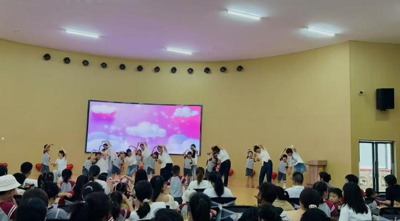典禮伊始,承載著孩子們三年園所生活點滴的紀念視頻在大屏幕播放,瞬間喚醒美好回憶?;顒臃秩笃抡归_,在“祝福?感恩”篇章,該園園長致辭,細數孩子們從啼哭入園到自信成長的蛻變,鼓勵其勇敢邁向小學,并向家長致謝;三個班班主任送上真摯祝福,家長代表表達感恩之情,幼兒代表分享不舍與憧憬。隨后,孩子們以感恩禮擁抱家長、行謝師禮鞠躬老師,幼兒代表向老師獻上象征向陽精神的向日葵,傳遞濃濃謝意。