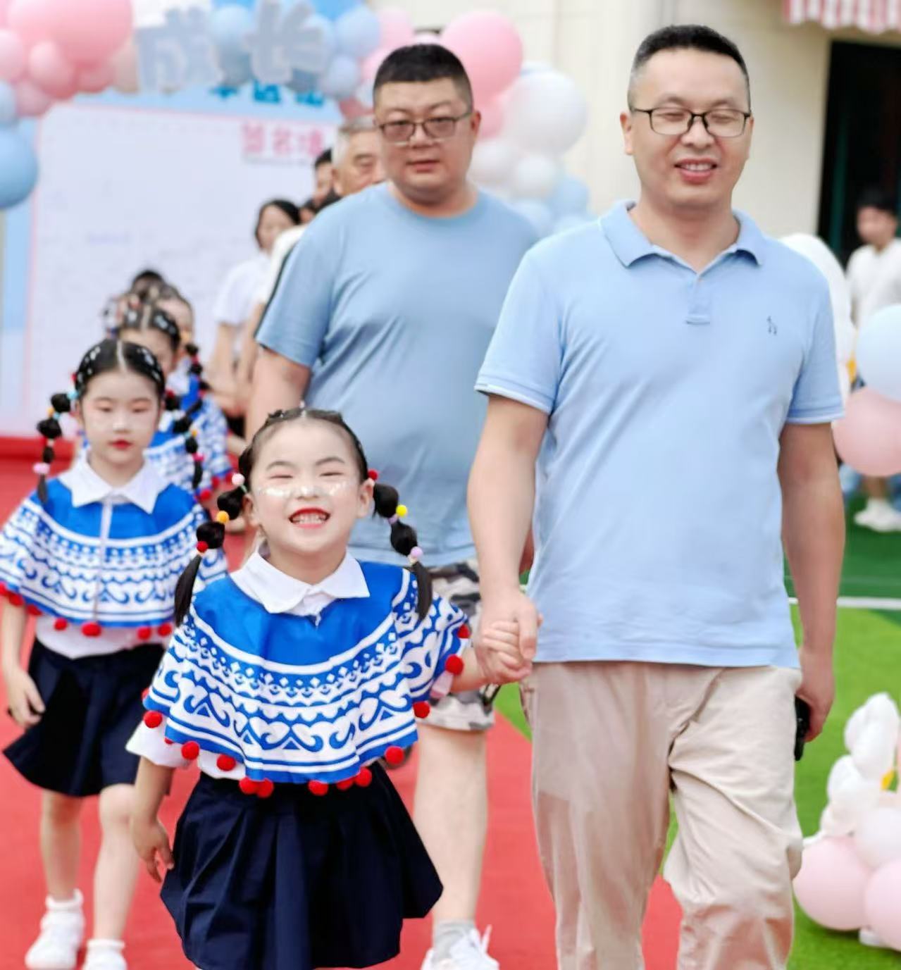 活動(dòng)伊始,孩子們?cè)诤灻麎ι相嵵貙懴旅郑ぶt毯穿過“成長(zhǎng)之門”,隨后,園長(zhǎng)致辭為典禮拉開序幕,幼兒代表分享成長(zhǎng)趣事,家長(zhǎng)代表真摯感恩園所培育,教師代表含淚訴說不舍與祝福,溫情氛圍瞬間彌漫全場(chǎng)。