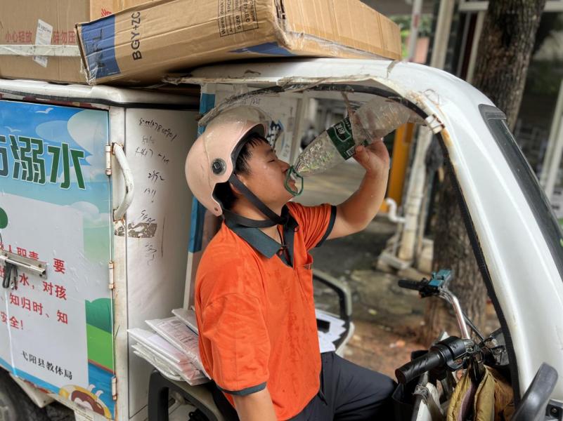 高溫還在持續(xù),毛金華的投遞車依舊每天穿梭在弋陽的街頭巷尾。他黝黑的皮膚是烈日的印記,利落的動作里藏著對崗位的熱忱,最后一個走進食堂的身影,寫滿了“郵件為先”的責任。