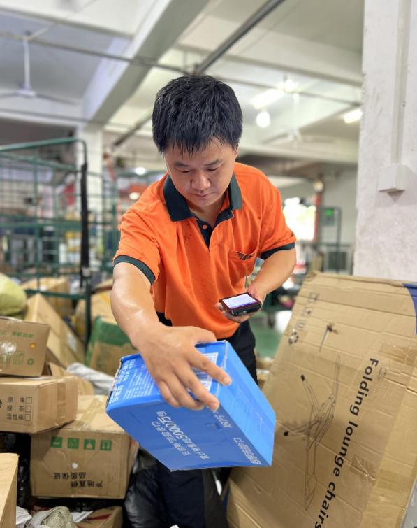 初見毛金華,是在攬投部的分揀房。每日清晨六點許,他便從家中出發(fā),七點剛過,已身著工作服,投入到緊張的分揀工作中。分揀臺上的郵件堆得像小山,他眼疾手快地核對地址、掃碼、碼放,動作利落得像在“打快拳”。“這是老街張大爺的降壓藥,那是開發(fā)區(qū)工廠的急件,都得按點送到?!彼^也不抬,語氣輕快,額前的碎發(fā)隨著動作輕輕晃動,透著股不服輸的精神勁兒。