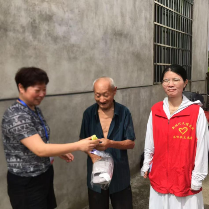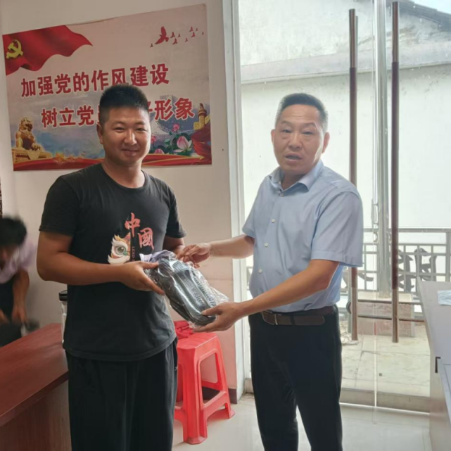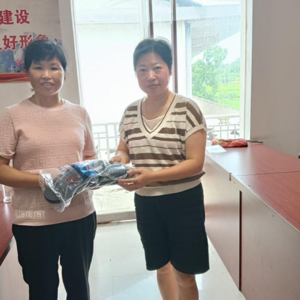 隨后,溫情滿滿的慰問品發(fā)放環(huán)節(jié)有序進(jìn)行。村“兩委”成員為每位公益性崗位工作者送上精心挑選的涼鞋,反復(fù)叮囑大家高溫作業(yè)時務(wù)必做好防暑降溫,合理安排工作時間,注意勞逸結(jié)合,還熱情邀請大家到村委納涼避暑。拿到嶄新涼鞋的一位保潔員難掩激動:“村里總把我們放在心上,這鞋穿在腳上,涼意在心里,干活更有勁了!” 在慰問90后種糧大戶時,鼓勵其發(fā)揮青年榜樣作用,帶動更多村民投身農(nóng)業(yè)發(fā)展,共促增收致富;最后村委入戶為孤寡困難戶送去消暑物資和涼拖,與他們親切交談,細(xì)致詢問生活中的困難與需求。