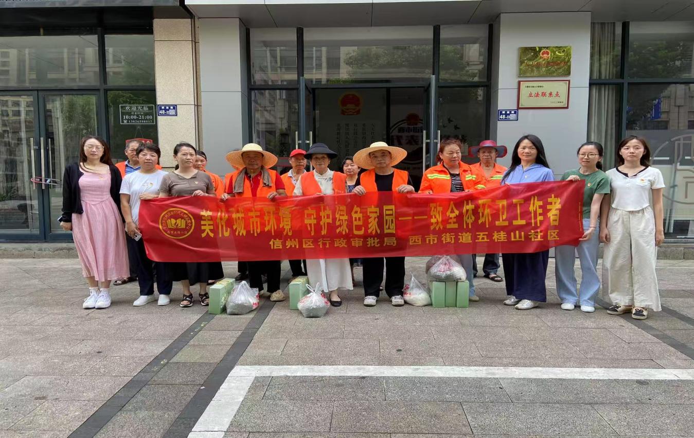 近日,信州區(qū)行政審批局?jǐn)y手西市街道五桂山社區(qū)共同開(kāi)展“夏日送清涼”慰問(wèn)活動(dòng),為轄區(qū)一線環(huán)衛(wèi)工人送去解暑綠豆等物資,用實(shí)際行動(dòng)傳遞關(guān)懷與敬意。