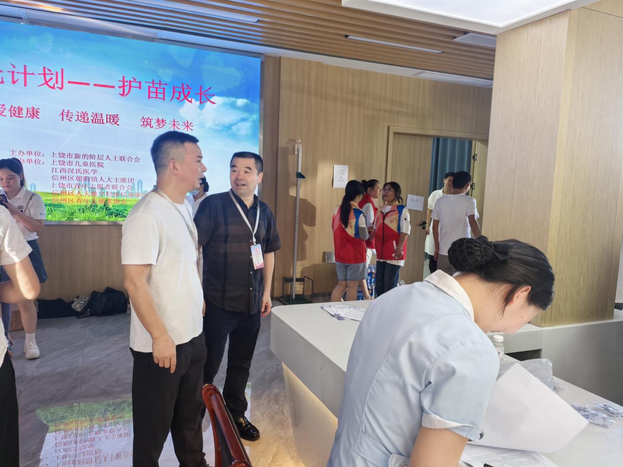 為充分發(fā)揮人大代表在密切同人民群眾聯(lián)系中的帶頭作用,切實(shí)保障留守兒童身心健康,8月16日,在信州區(qū)人大代表黃毅、黃堅(jiān)、徐光國的牽頭組織下,由上饒市新的階層人士聯(lián)合會(huì)主辦,上饒市兒童醫(yī)院、上饒市青年志愿者聯(lián)合會(huì)、江西漢氏醫(yī)學(xué)、信州區(qū)人大數(shù)字經(jīng)濟(jì)代表聯(lián)絡(luò)點(diǎn)、信州區(qū)青年志愿者協(xié)會(huì)、信州區(qū)朝陽鎮(zhèn)人大等多家單位承辦的“心手相伴 快樂成長”——關(guān)愛留守兒童免費(fèi)健康體檢活動(dòng)在朝陽鎮(zhèn)舉行,為全鎮(zhèn)60余名兒童提供優(yōu)質(zhì)健康服務(wù),并為困境兒童發(fā)放捐贈(zèng)物資。區(qū)人大常委會(huì)副主任、區(qū)總工會(huì)主席蔣德賢,朝陽鎮(zhèn)人大主席鄭共劍等參加活動(dòng)。