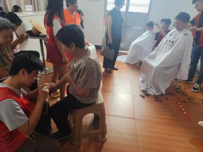 活動現(xiàn)場暖意融融,志愿者們分工協(xié)作,忙碌的身影穿梭在老人中間。理發(fā)區(qū)里,志愿者手持剪刀,一邊細(xì)致地為老人修剪頭發(fā),一邊輕聲詢問 “這樣的長度您滿意嗎?”“要不要再修得短一點(diǎn)?” 輕柔的話語搭配嫻熟的手藝,讓老人們在輕松的氛圍中換了新發(fā)型,鏡中的自己精神抖擻,笑容也格外燦爛。