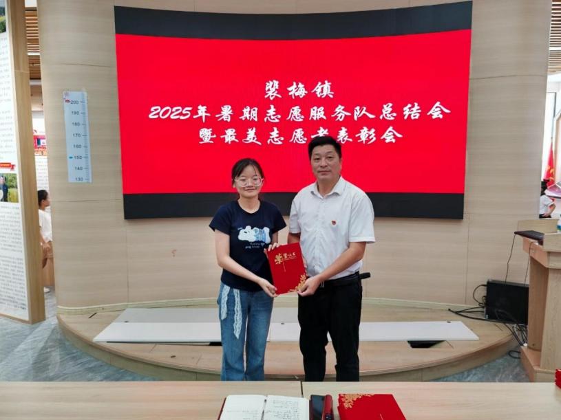 會(huì)議最后,9名志愿者獲頒裴梅鎮(zhèn)暑期“最美志愿者”榮譽(yù)證書。紅色封皮映照著青春面龐,兩個(gè)月的汗水凝聚成莊重表彰。這份榮譽(yù)不僅是對(duì)過往工作的肯定,更是青春力量與鄉(xiāng)村振興雙向奔赴的見證。