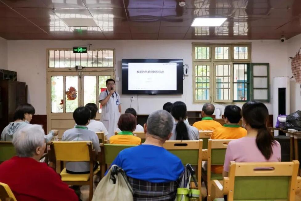 針對高血壓、糖尿病、冠心病、癡呆等老年人常見慢性病,專家們開展了個體化用藥指導(dǎo)、飲食建議和康復(fù)方案制定,幫助老人更好地進行日常健康管理。時值阿爾茨海默病日來臨之際,神經(jīng)內(nèi)科副主任鐘岳飛還為老人進行了認(rèn)知障礙篩查,并作了《癡呆早期識別與處理》專題授課,詳細解讀了癡呆的十大早期征兆及應(yīng)對措施,有效提升了工作人員對認(rèn)知障礙老人的照護能力。