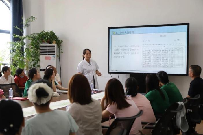 后勤副園長(zhǎng)詳細(xì)解讀膳委會(huì)核心職責(zé),明確委員需在食材安全監(jiān)督、食譜制定參與、食堂衛(wèi)生檢查、關(guān)鍵環(huán)節(jié)公示見(jiàn)證等方面發(fā)揮作用,“希望與委員們緊密協(xié)作,把好幼兒飲食安全與營(yíng)養(yǎng)均衡關(guān)”。黨支部書記、園長(zhǎng)則以“全流程嚴(yán)把控”為核心,介紹幼兒園食堂管理細(xì)則:從食材采購(gòu)的規(guī)范標(biāo)準(zhǔn)、入園前的嚴(yán)格檢驗(yàn),到食品加工的衛(wèi)生要求、留樣制度的規(guī)范執(zhí)行,再到常態(tài)化陪餐機(jī)制的落實(shí),每一環(huán)均有明確標(biāo)準(zhǔn)與監(jiān)督措施。