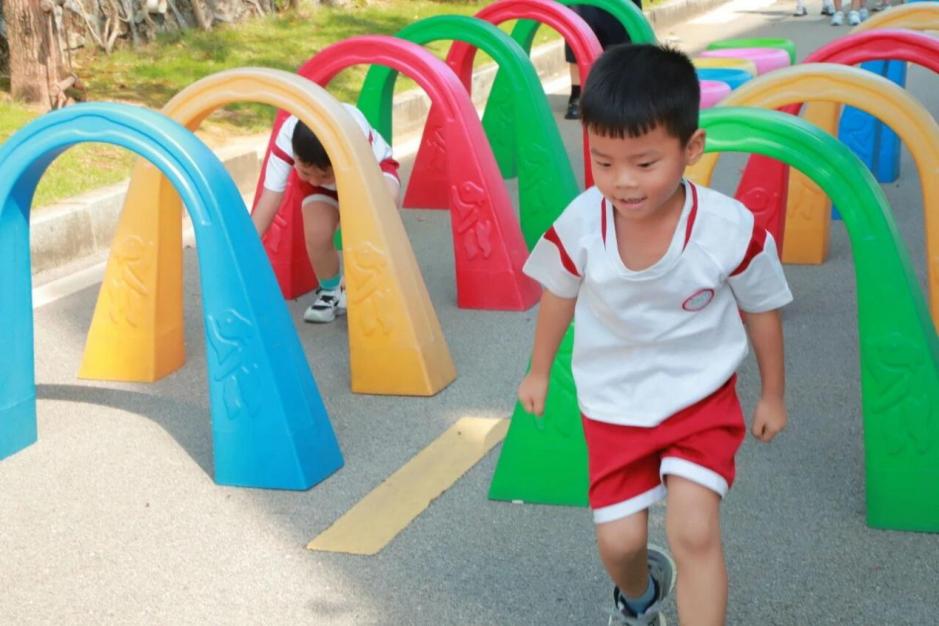 游戲場上更顯活力,“翻山越嶺”“水中撈月”等趣味游戲輪番上演,幼兒們在陽光下穿梭奔跑,汗水里滿是快樂,展現(xiàn)出蓬勃朝氣。