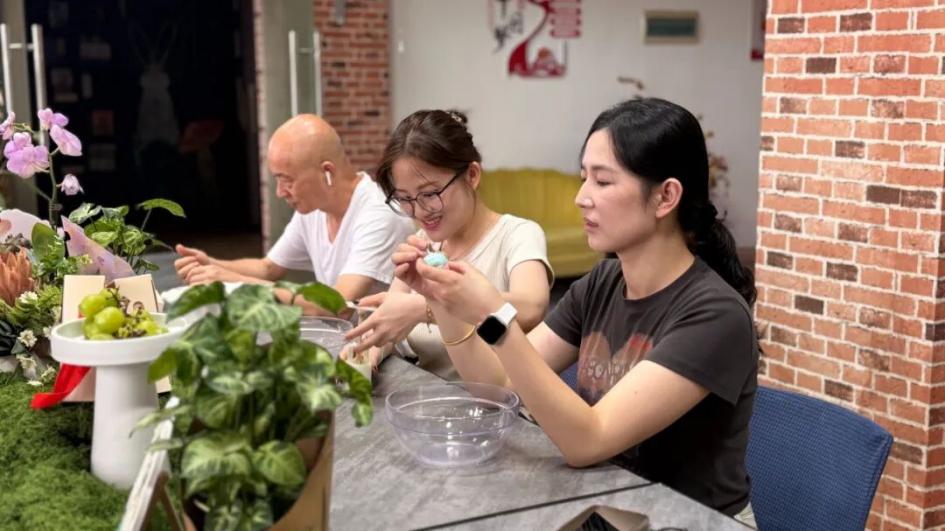 活動現(xiàn)場布置得溫馨雅致,綠植點綴其間,燈籠、氣球增添了節(jié)日的喜慶。在專業(yè)老師的指導(dǎo)下,員工們興致勃勃地投入到月餅制作中。大家揉面團(tuán)、包餡料、壓模具,一個個動作有模有樣。手中的面團(tuán)在巧手下變幻出可愛的造型,彩色的餡料更是為月餅增添了幾分靈動。制作過程中,大家相互交流技巧、分享心得,歡笑聲不斷,現(xiàn)場洋溢著歡樂融洽的氛圍。當(dāng)看到自己親手制作的月餅新鮮 “出爐”,大家臉上都露出了欣喜的笑容,滿滿的成就感油然而生。