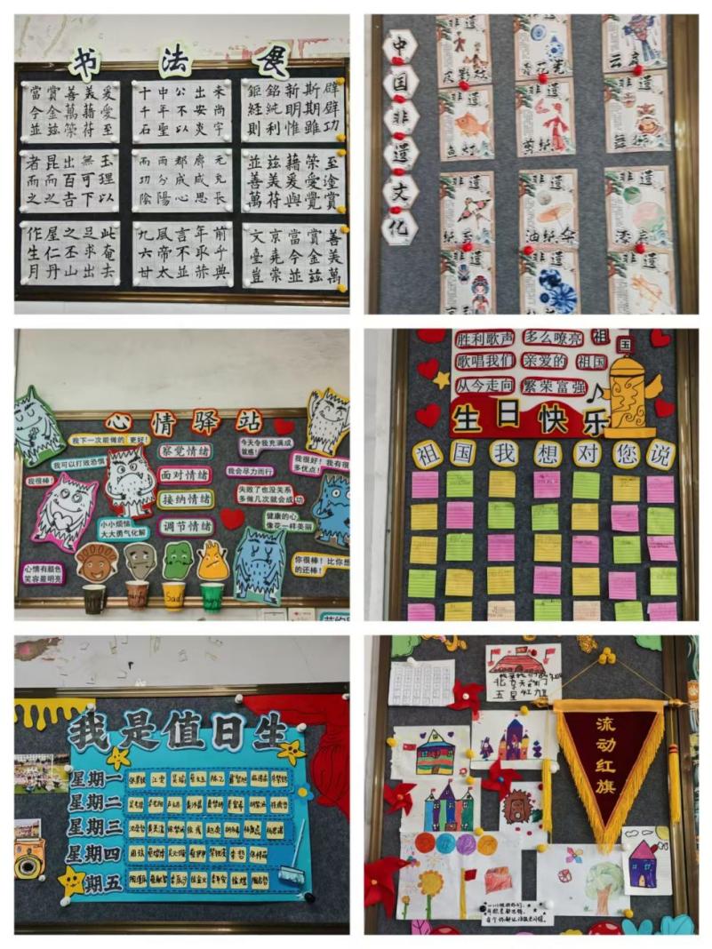 各班班主任根據(jù)孩子的年齡特點,巧妙構思,精心布置,教室后面一幅幅黑板報既美觀又創(chuàng)新,內(nèi)容栩栩如生,把無聲的教育變成有聲的教育,為班級文化增添了濃厚的一筆。