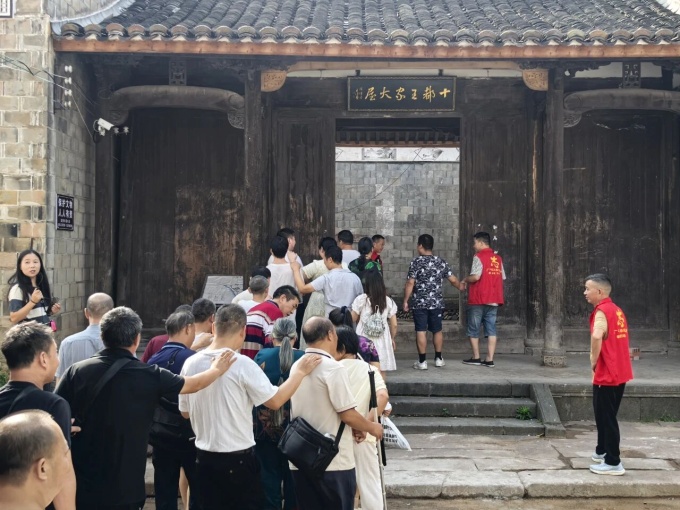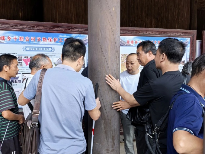 當天上午,盲人朋友們在陪護家屬和助殘志愿者的全程陪同下前往嵩峰鄉(xiāng)十都王家大屋游覽。在工作人員的貼心陪伴與導游的細致講解下,大家徜徉于青石板路,用雙腳丈量,通過觸摸古老的墻磚,體會“中華第一民宅”十都王家大屋的風光。