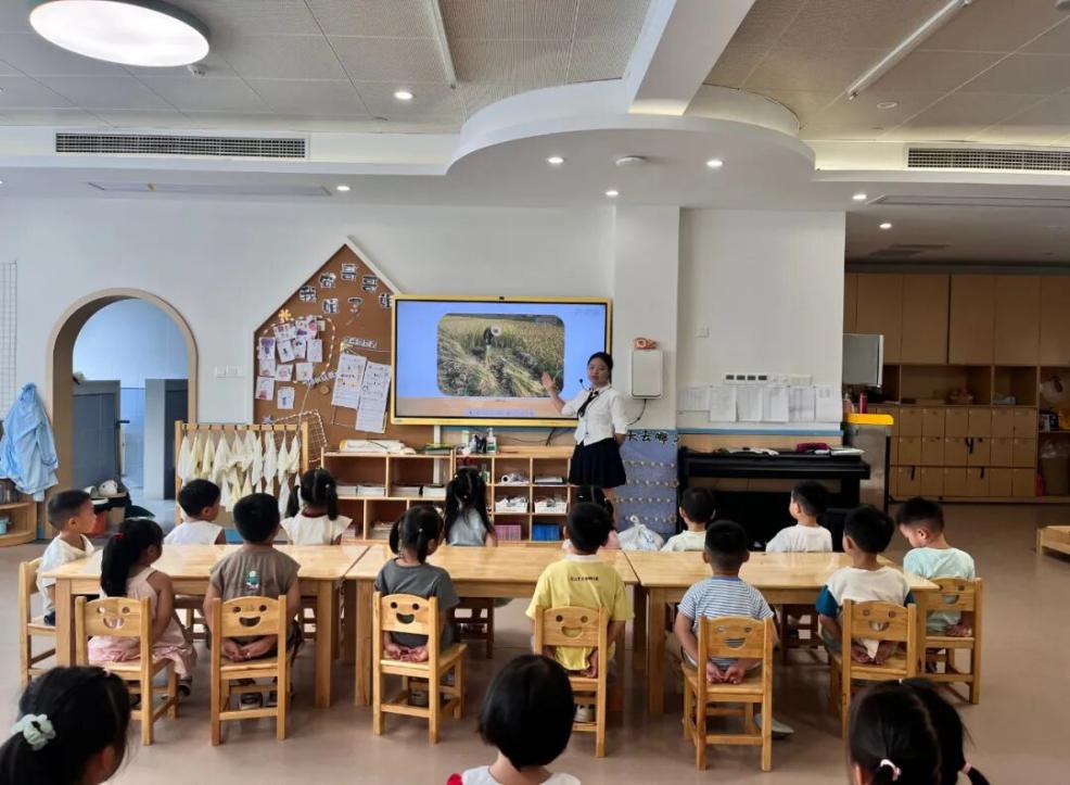 活動(dòng)以“知糧”為起點(diǎn),開啟糧食探索之旅。各班教師通過生動(dòng)的主題教育課,結(jié)合圖片、故事等多元形式,向孩子們講述“雜交水稻之父”的事跡,直觀展現(xiàn)糧食從田間到餐桌的全過程,幫助幼兒深刻理解每一粒米飯背后的辛勤付出。在“識(shí)糧”環(huán)節(jié),教師帶領(lǐng)孩子們共讀珍惜糧食主題繪本,用童趣盎然的故事將“珍惜”理念悄悄植入童心,讓孩子們?cè)诶L本情境中感知節(jié)約的意義。