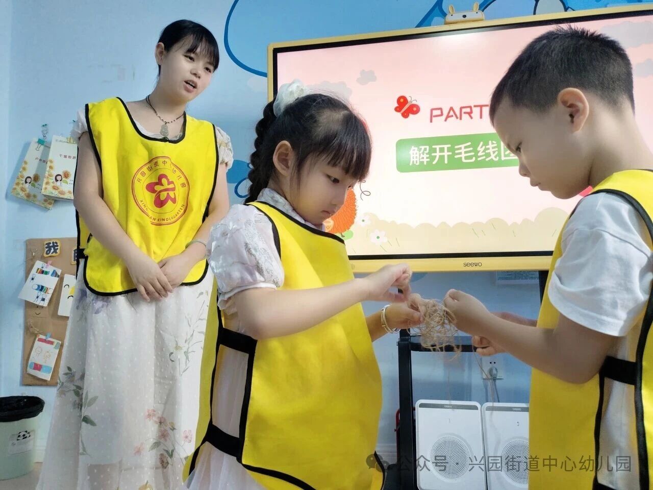 手工環(huán)節(jié)“解開毛線團”更是將課程推向高潮。孩子們小手耐心的解開“解開毛線團”,臉上有著開心、著急、期待等情緒但都被耐心給替代了。老師引導(dǎo)他們分享:“當(dāng)你解不開毛線團的時候是什么心情,把毛線團解開又是什么心情呢?孩子們在輕松的氛圍中學(xué)會識別和表達自身感受,也理解了“耐心等待會讓期待的事情更美好”。