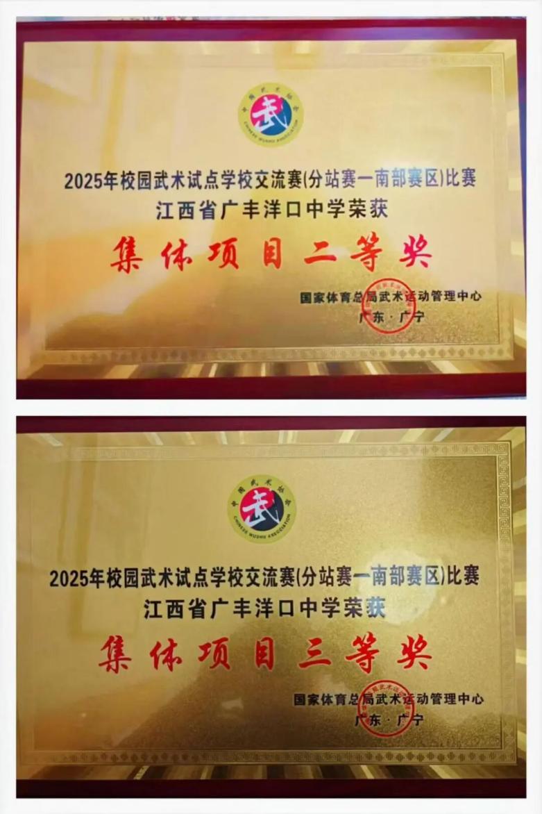 9月20日至25日,全國校園武術(shù)試點(diǎn)學(xué)校交流賽南部賽區(qū)分站賽中,廣豐洋口中學(xué)武術(shù)隊(duì)已初露鋒芒,成功斬獲集體項(xiàng)目二等獎與三等獎各一項(xiàng),以優(yōu)異成績順利晉級全國總決賽,為沖擊更高榮譽(yù)奠定堅(jiān)實(shí)基礎(chǔ)。