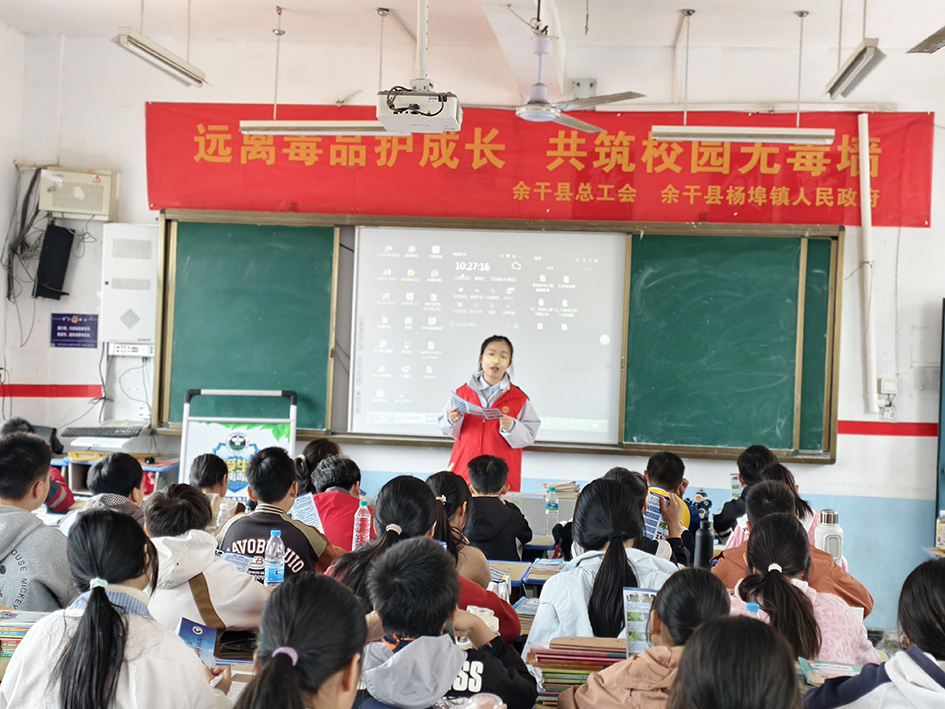 10月22日,余干縣總工會聯(lián)合楊埠鎮(zhèn)黨委政府走進楊埠初中,開展以“遠離毒品護成長,共筑校園無毒墻”為主題的禁毒宣傳進校園活動。