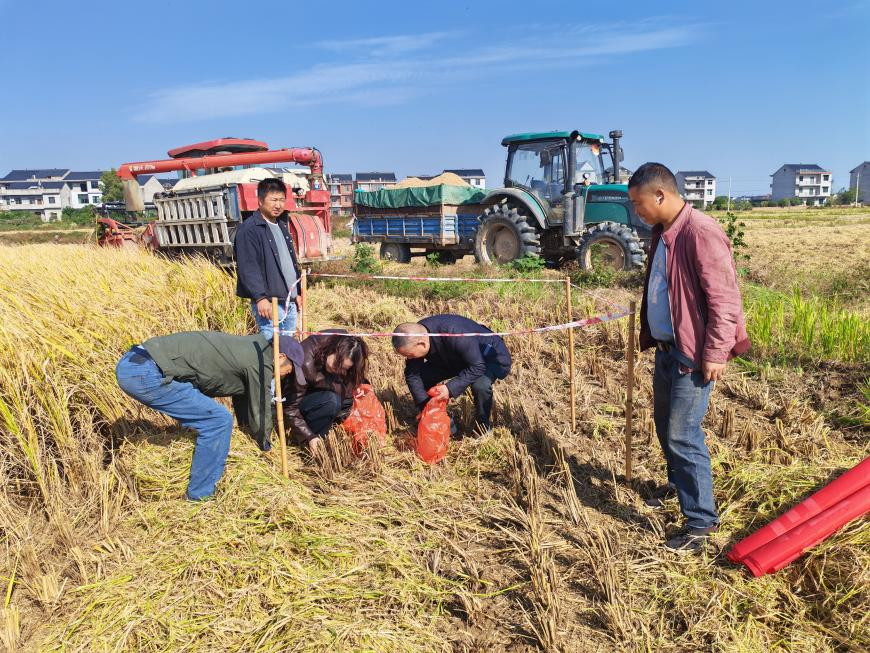 比賽現(xiàn)場,農(nóng)機手們依次駕駛聯(lián)合收割機投入作業(yè),收割、脫粒、秸稈粉碎等環(huán)節(jié)一氣呵成,田間稻茬鋪展整齊有序。為確保公平公正,考評人員依據(jù)《糧油作物機收損失監(jiān)測調(diào)查測定方法》,對收割后的稻田開展損失測量,詳細填寫監(jiān)測調(diào)查記錄表,記錄水稻損失率及地塊相關(guān)情況,并對監(jiān)測數(shù)據(jù)進行專業(yè)分析評估。結(jié)果顯示,此次水稻機收平均損失率控制在2%以內(nèi)。