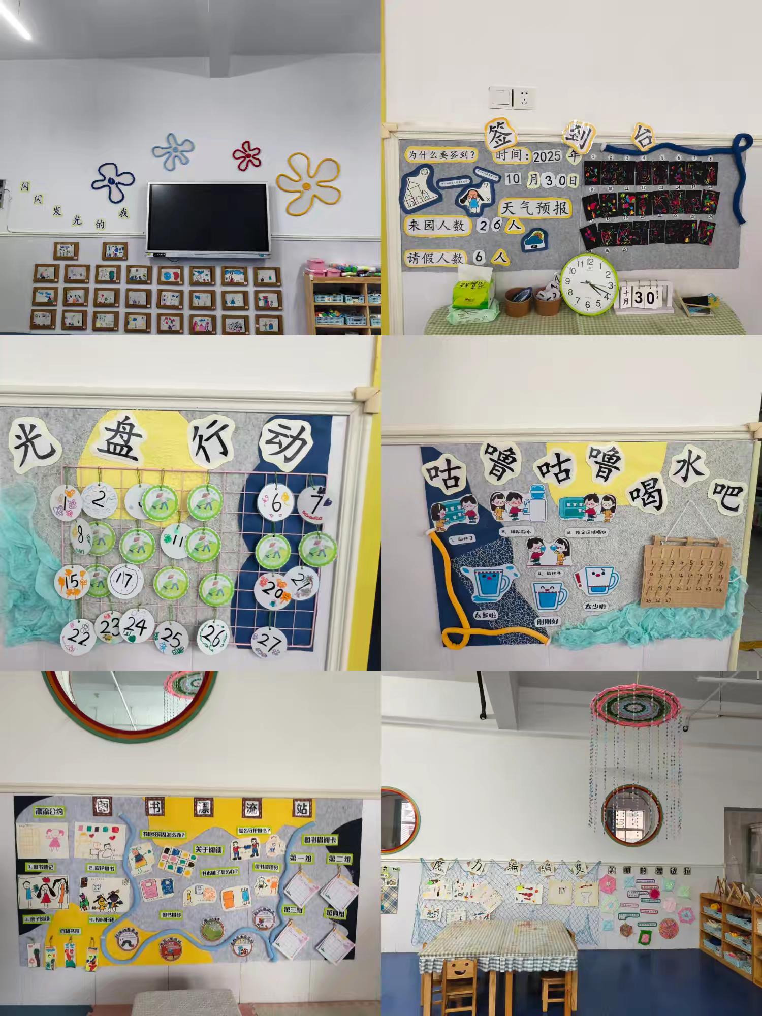 本次評(píng)比采用邊走邊講的參觀形式,各班老師化身講解員,帶著大家走進(jìn)班級(jí)的喝水區(qū)、各個(gè)區(qū)域、光盤(pán)行動(dòng)等每一處布置。她們細(xì)細(xì)分享環(huán)境創(chuàng)設(shè)的巧思、主題墻的設(shè)計(jì)亮點(diǎn),以及藏在每一處細(xì)節(jié)里的教育用心——從理念到落地,從墻面到角落,讓每一份環(huán)創(chuàng)都成為看得見(jiàn)的教育故事。