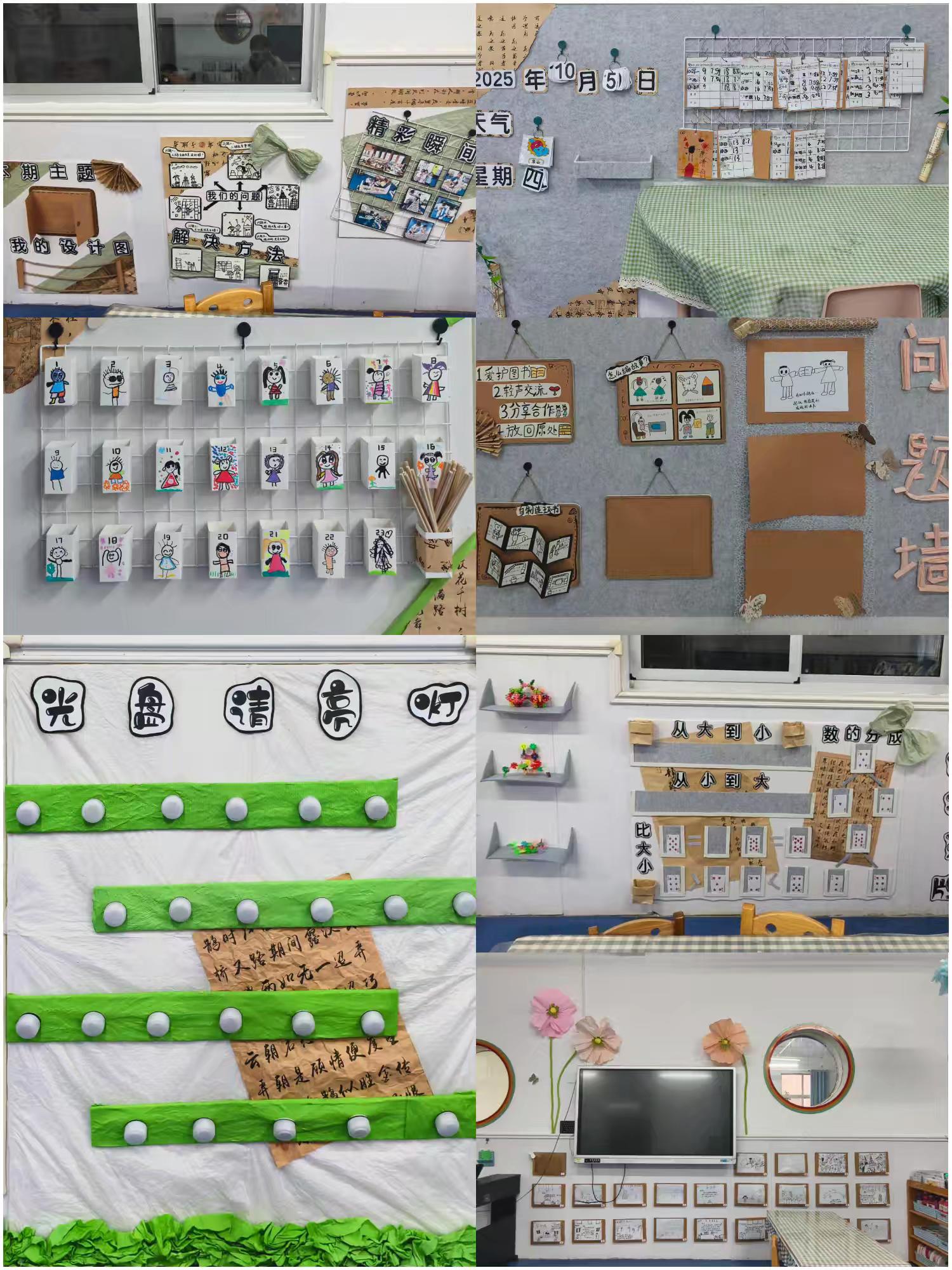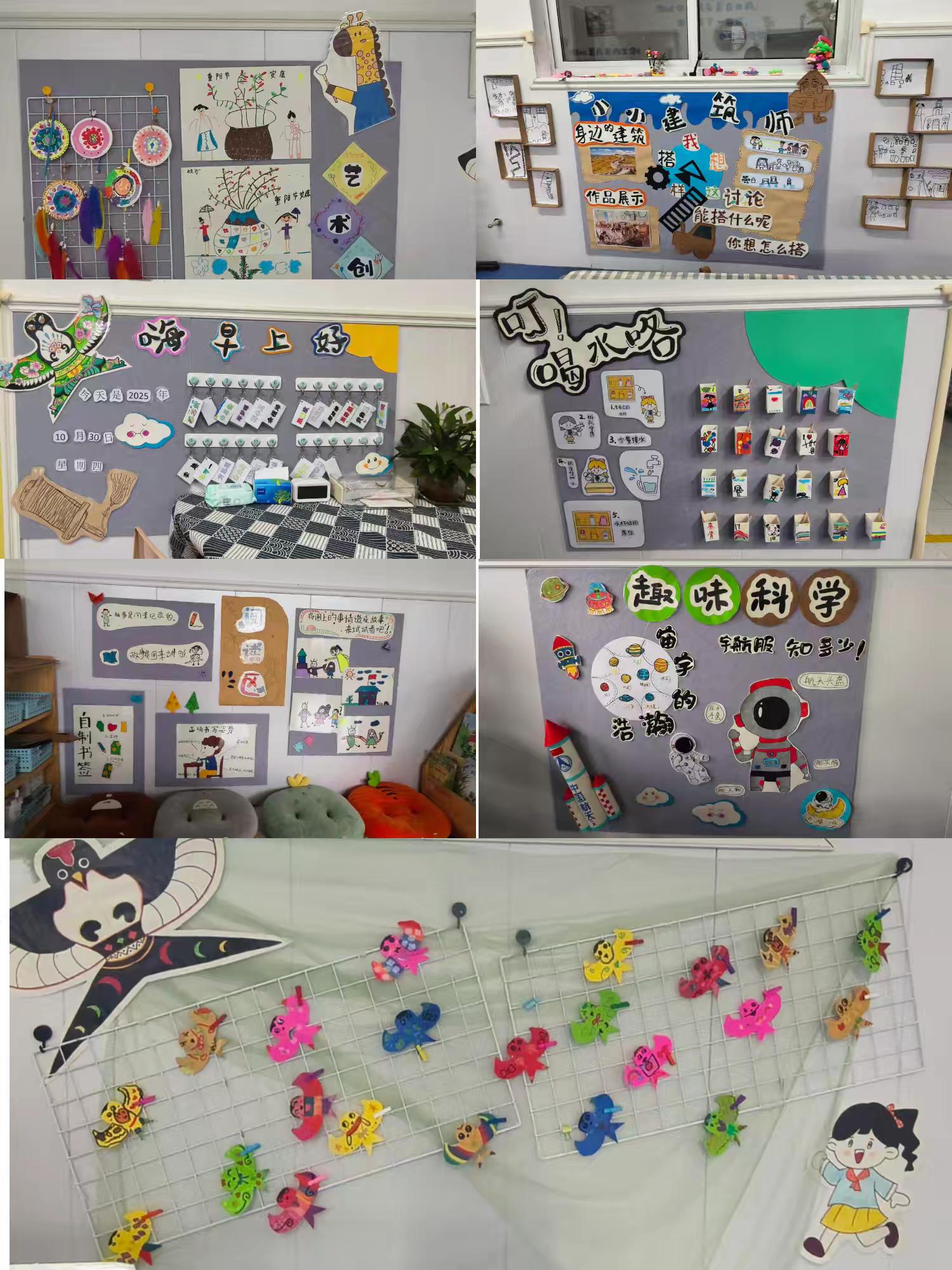 評(píng)比活動(dòng)中,園長(zhǎng)與各班老師共同參觀了所有班級(jí)的環(huán)創(chuàng)區(qū)域。大家在參觀中互相學(xué)習(xí),交流經(jīng)驗(yàn)??偠灾變簣@環(huán)創(chuàng)絕非單純的空間裝飾,它是一門(mén)“隱性課程”。每一處精心設(shè)計(jì)的角落、每一種材質(zhì)的巧妙運(yùn)用,都在以兒童的視角構(gòu)建著教育場(chǎng)域——它讓孩子在與環(huán)境的互動(dòng)中萌發(fā)探究欲,在審美體驗(yàn)里滋養(yǎng)創(chuàng)造力,更在潛移默化中培養(yǎng)著他們的合作意識(shí)與生活智慧。這種“潤(rùn)物無(wú)聲”的環(huán)境教育,最終將助力孩子在充滿童趣與思考的氛圍中,收獲全面且富有個(gè)性的成長(zhǎng)。(鄭雅雯)